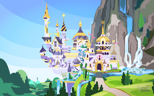 Кантерлот — столица Эквестрии и дом принцесс Селестия и Луны. Достопримечательности: вокзал, школа для одарённых единорогов, лабиринт, обсерватория старой библиотеки, замок и крыло Свирла Бородатого.